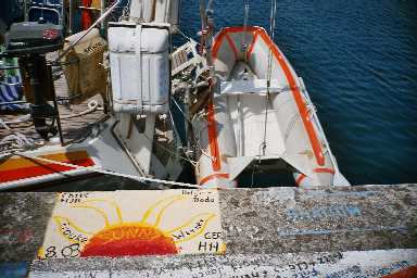 | Anfang Juli 2003 wurde wieder eine Fahrt nach den Azoren durchgeführt und bis Ende August zwischen den Azoren-Inseln gesegelt. Aufregendestes Erlebnis war ein Besuch von einer Schule von Finnwalen, die uns über mehr als eine Stunde begleiteteten. | |||||||||||||||||||||||||||||||||||||||||||||||||||||||||||||||||||||