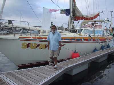 Die Sunny: Fragen? Schicken Sie uns eine mail ist eine 16m Segelyacht (Reinke 16m, Twinkiel) aus Aluminium (Decksalon) mit einem Mast (Sloop). Sie ist nach neuestem Stand ausgestattet: Sicherheit: Sie hat ein Bootszeugnis vom Wasser- und Schifffahrtsamt, das bescheinigt, dass sie für 10 Personen ausgestattet und zugelassen ist. Z. B.: es gibt 2 Rettungsinseln à 6 Personen, 10 Automatikwesten (plus 2 Feststoffwesten für Kinder) mit Sorgeleinen, 4 Feuerlöscher, eine EPIRB-Boje (Notfall-Automatik über Satellit), diverse Raketen, 2 UKW-Funk fest und variabel, Wetterdecoder, 3 Anker mit 100 und 50 m Kette, Treibanker, hoch ausgerüstete Bordapotheke, Mann-über-Bord-Lifesling, etc. Ausstattung: 4 Kabinen mit 2 und 3 Kojen, 4 WC (Vacuflush), Wassertanks 2x1000 Liter, 2 Duschen, Warmwasserboiler 100 Liter, 2 Fäkalientanks, 2 Grauwassertanks, 6KW Generator (220 Volt), Ceran-E-Herd, Kühlschrank, Brotbackmaschine, Waschmaschine, Fernseher, Video, etc. Alle Kojen sind mit kompletter Bettwäsche und Handtüchern ausgestattet. Rigg: Arbeitsrollfock am Baum (ca. 45qm), Rollgenua (ca. 90qm), Sturmfock (16qm), Spinnaker, Groß mit 3 Reffs (45qm). Masthöhe 19m. 2 Hauptwinschen elektrisch, 5 weitere Winschen. Navigation: Radar (Raytheon mit 1,20m Antenne), 2 GPS, Papierkarten und PC-Karten mit entsprechender Software, Kompass (2), Autopilot elektrisch, Windfahnensteuerung (Pacific plus), Log, Lot, Peilkompass, Fishfinder mit Tiefenlot, etc. Motor: 2 Ford à 84 PS, 2 Propeller (Prowell Drehflügelpropeller), 2 Dieseltanks à 650 Liter, 4 Batteriebänke (900 ah, 3x160 ah), 2 Windgeneratoren (z. Zt. abgebaut), 2 Ladegeräte, etc.. Sonstiges: Dinghy mit 5 PS Außenborder, Sonnensegel, verspiegelte Doppelglasscheiben, 4 Dorade-Lüfter, 9 Skylights (Lewmar), etc.. Die Sunny wird überwiegend mit Skipper (-paar) betrieben. Bareboot-Charter ist nur möglich nach 1 tägiger Einweisung und ausgewiesener Erfahrung des verantwortlichen Skippers. | ||||||||||||||||||||||||||||||||||||||||||||||||||||||||||||||||||||||